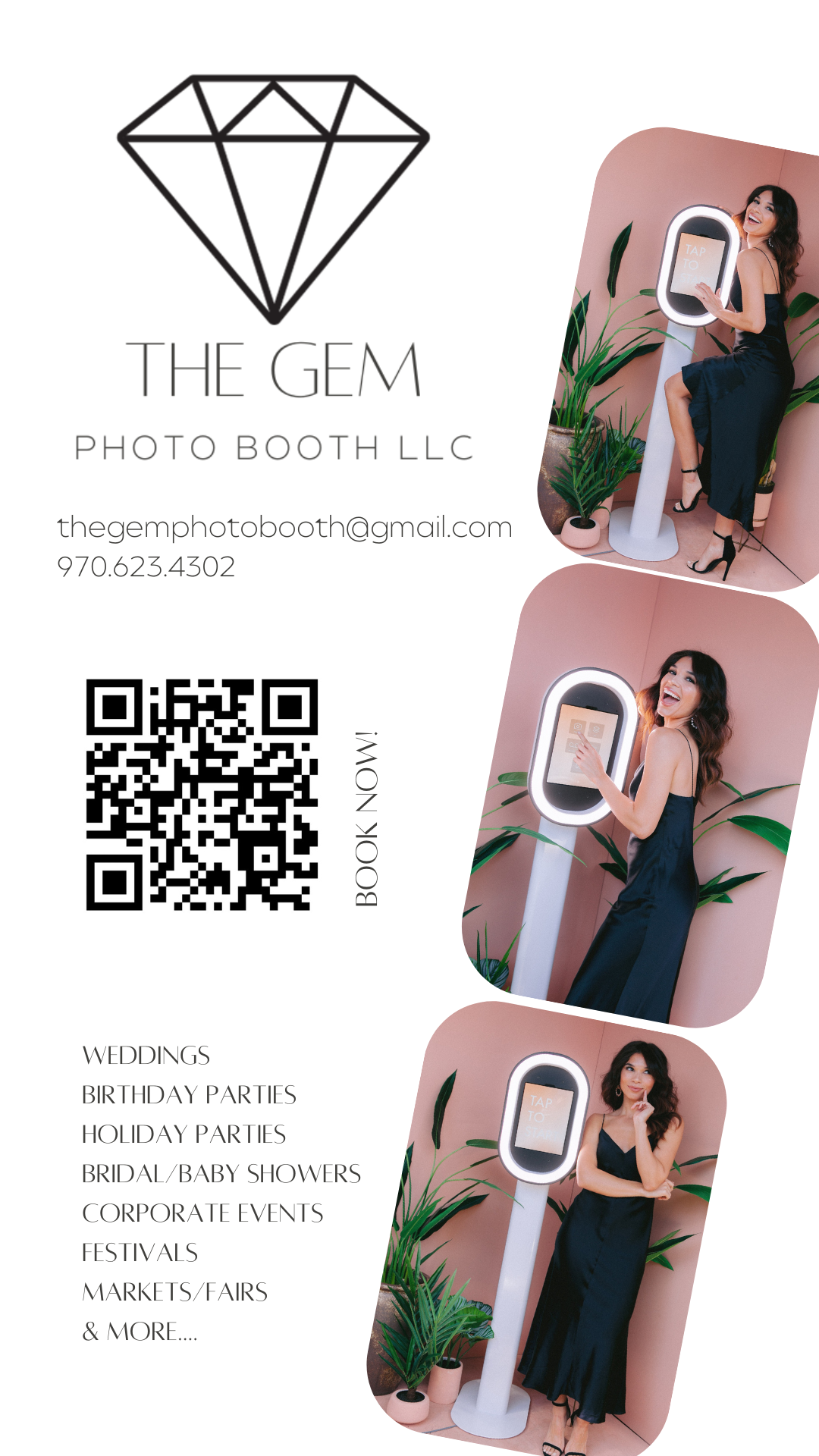 The Gem Photo Booth provides a memorable experience for all of your guests at any event! The Gem specializes in events on the western slope of Colorado, but she travels all over the world! You can find her popping up at celebrations ranging from birthday parties, holiday parties & corporate events when she is not celebrating love at a wedding. There is no event too big or too small for The Gem- she is ready for it all!